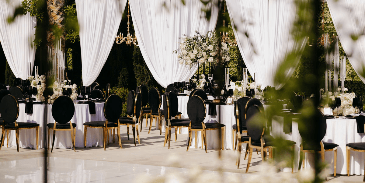 Experience the pinnacle of opulence with everything included in the Diamond Package, and more. This premium offering features luxurious furnishings, exceptional crystalware, exclusive floral arrangements, a comprehensive wedding rehearsal 4-2 days before the event, and even an Airbnb stay to make your special day absolutely extraordinary.
